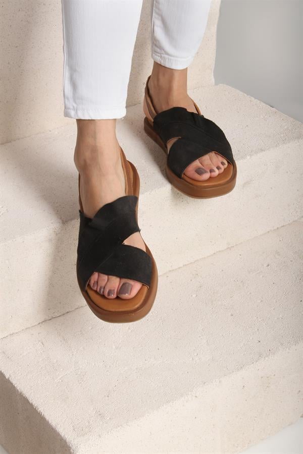 Majensia 131302 Çapraz Bantlı Sandalet Hakiki Deri Siyah Süet (131302SİYAH SÜET)