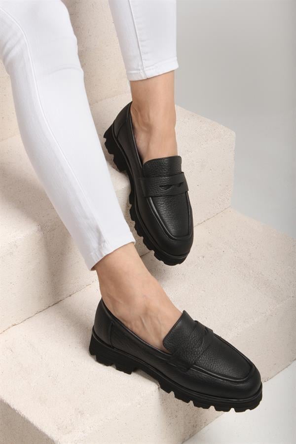 Majensia 141212 Şık Günlük Loafer Hakiki Deri Siyah Flotur (141212SİYAH FLOTUR)