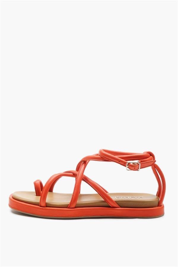 Majensia 141506 Parmak Arası İnce Bantlı Sandalet Hakiki Deri Kırmızı