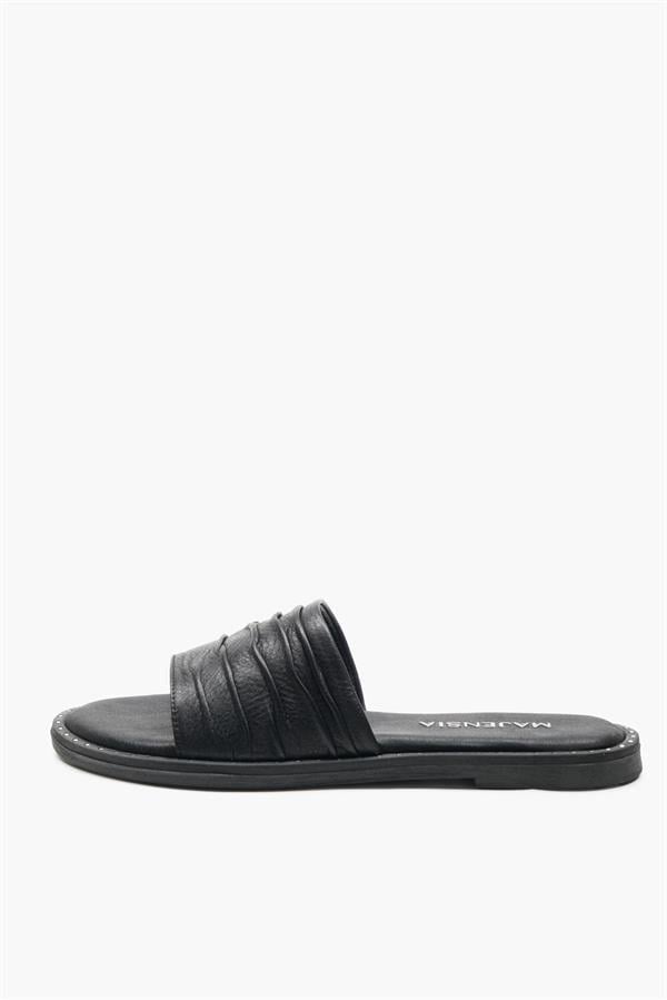 Majensia 141779 Katlı Bant Detaylı Günlük Terlik Hakiki Deri Siyah
