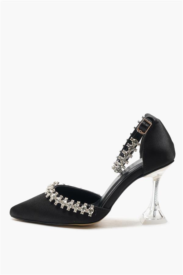 Majensia 155035 Taş Detaylı Topuklu Ayakkabı Siyah Saten