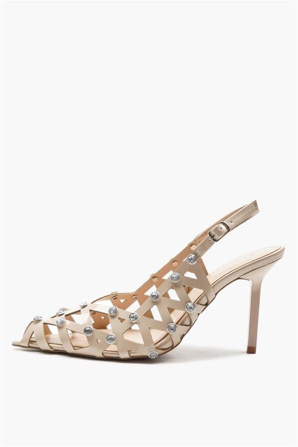 Majensia 155207 File Detaylı Topuklu Ayakkabı Bej Rugan