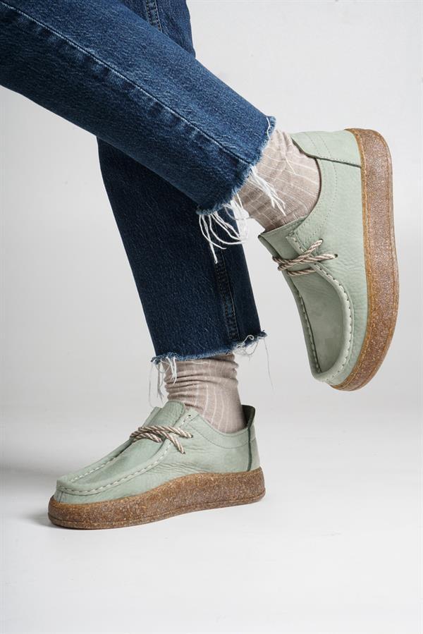 Majensia 241094 Şık, Hafif ve Rahat Hakiki Deri Ayakkabı - SU YEŞİLİ NUBUK