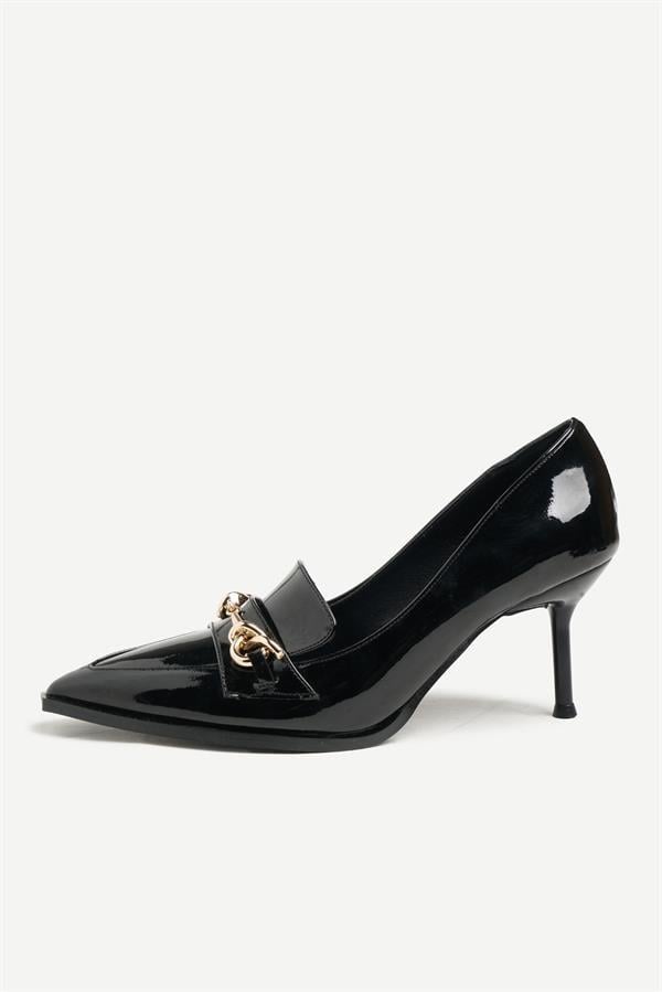 Majensia 255003 Altın Tokalı Topuklu Ayakkabı Siyah Rugan (255003SİYAH)