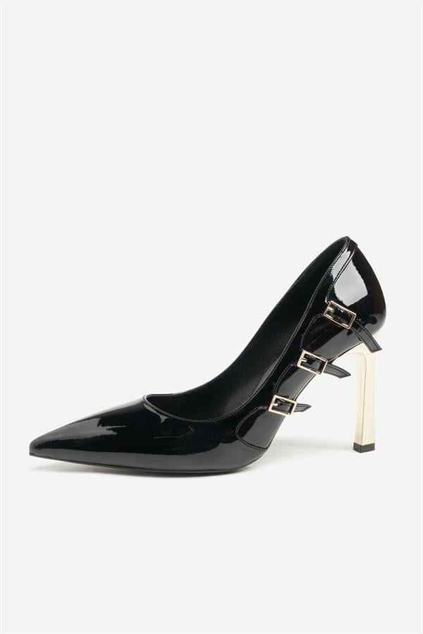 Majensia 255007 Üç Tokalı Stiletto Siyah Rugan (255007SİYAH)