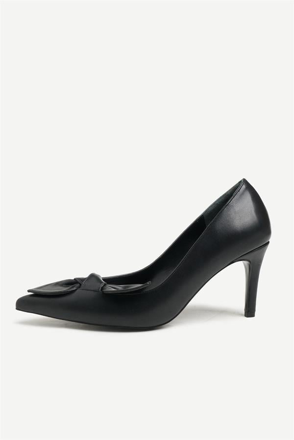 Majensia 255010 Fiyonk Detaylı Topuklu Ayakkabı Siyah Deri (255010SİYAH)