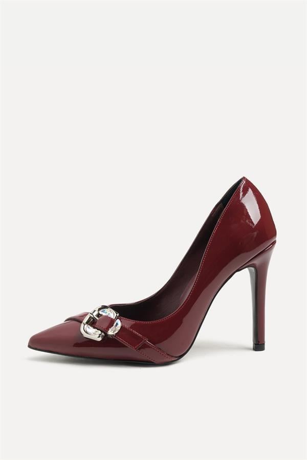 Majensia 255012 Şık Tokalı Topuklu Ayakkabı Bordo Rugan (255012BORDO)
