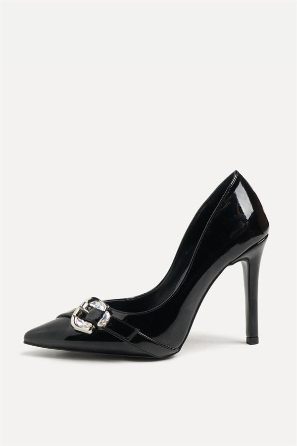 Majensia 255012 Şık Tokalı Topuklu Ayakkabı Siyah Rugan (255012SİYAH)