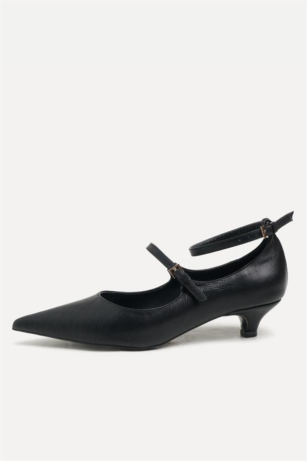 Majensia 255016 Çift Tokalı Topuklu Ayakkabı Siyah Deri (255016SİYAH)
