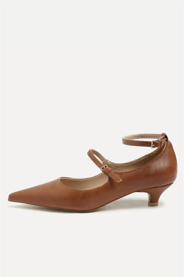 Majensia 255016 Çift Tokalı Topuklu Ayakkabı Taba Deri (255016TABA)